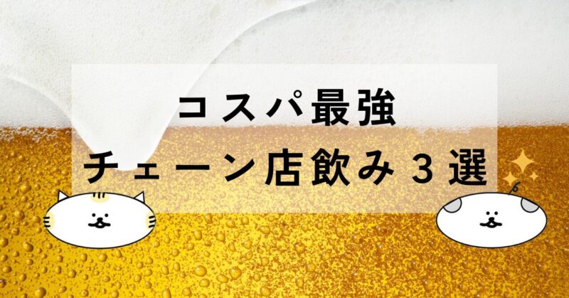 無職夫婦が通っているコスパ最強チェーン店飲み3選を紹介しました。