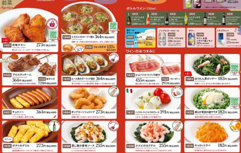 サイゼリヤ:4品+2杯のイタリアン昼飲みコース