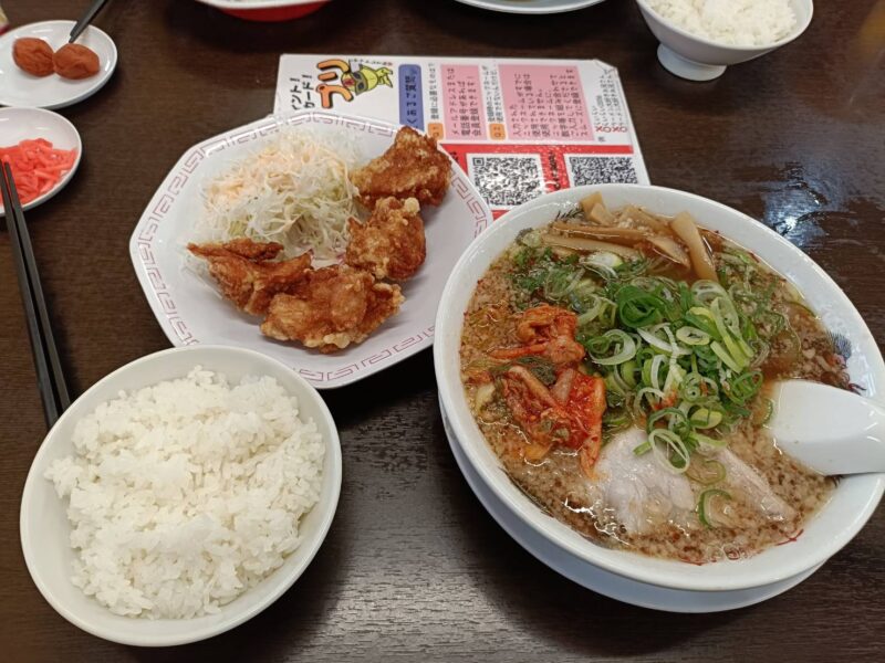 お好きなラーメンに+460円で餃子と半チャーハンがついてきます。