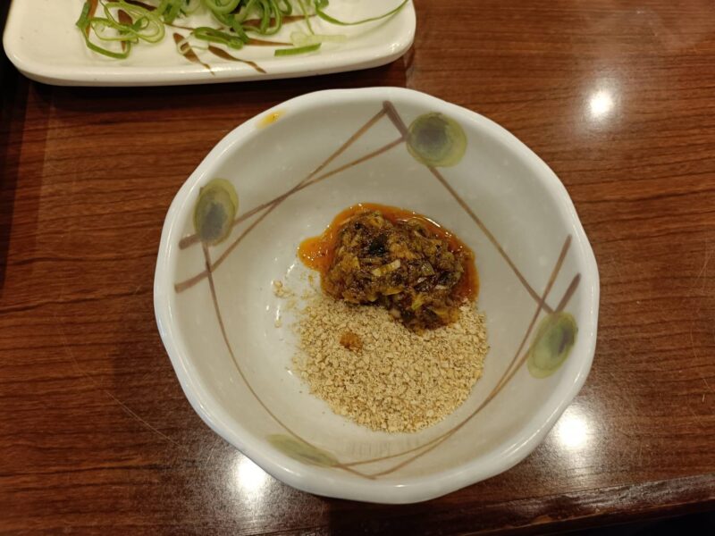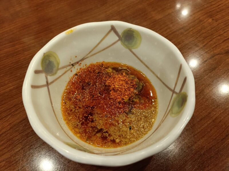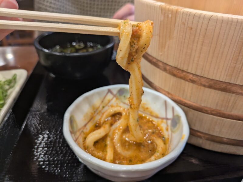 胡麻担々うどん:すりごま+しび辛ラー油+一味+香七味+つけつゆ+青ねぎ