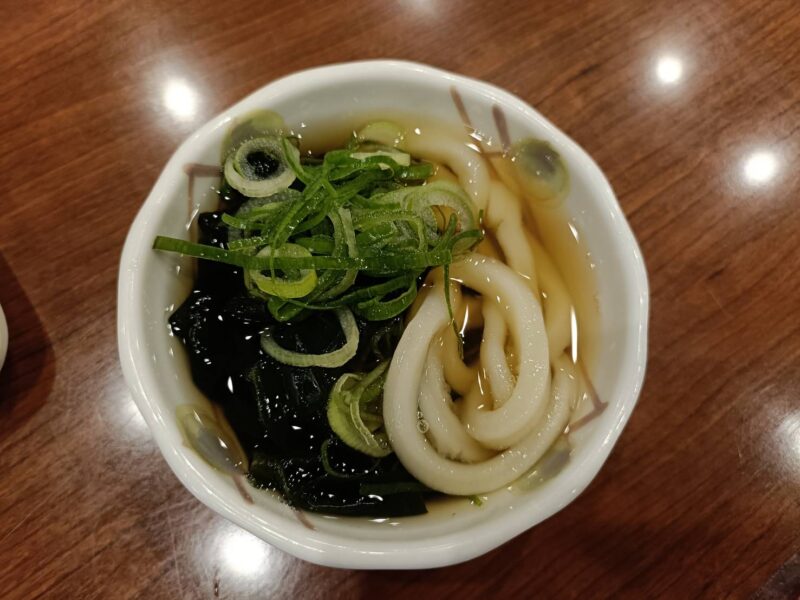 釜揚げうどんしか頼んでないのに、わかめうどんが食べられます!