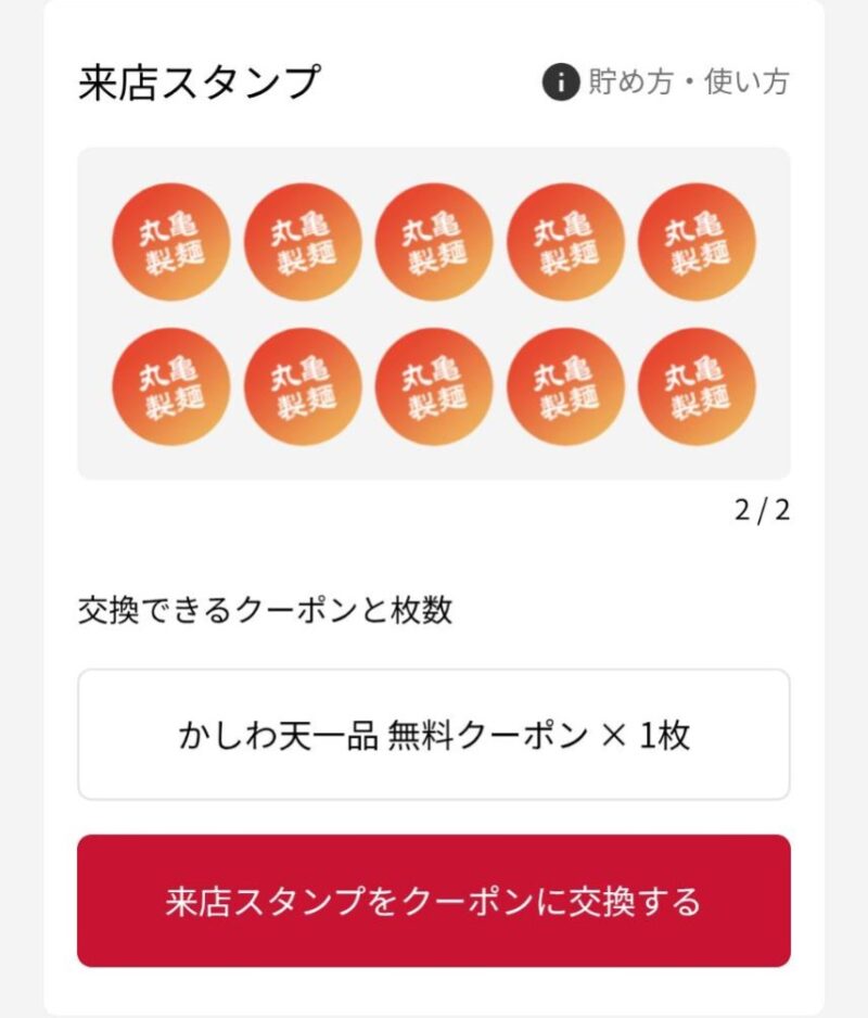 レシートのQRコード読み込みで貯まる。10個で「かしわ天」無料など。