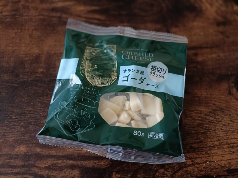イオンで買ったこのチーズ。オランダ産のゴーダチーズというと癖がないかな?と思ったんですが、食べやすいんですがちょっと苦みを感じる…。