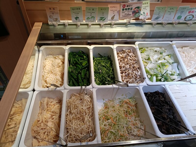 やっぱり香味野菜と細笹ネギが好きだったのでこの2種類と、うどん、生中華麺、焼き麩を。