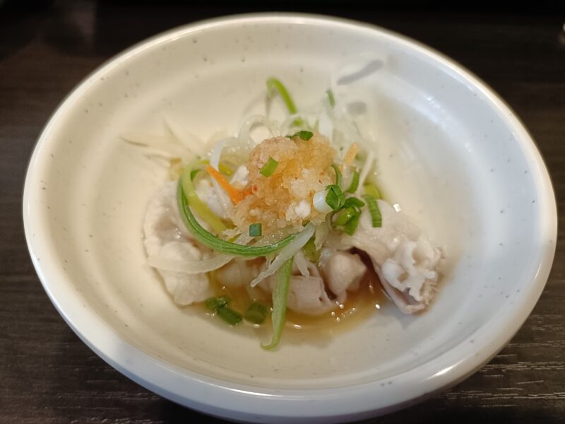 まず最初は、白だしでしゃぶしゃぶしたお肉と香味野菜を和だしつゆにつけて紅葉おろしとねぎで!