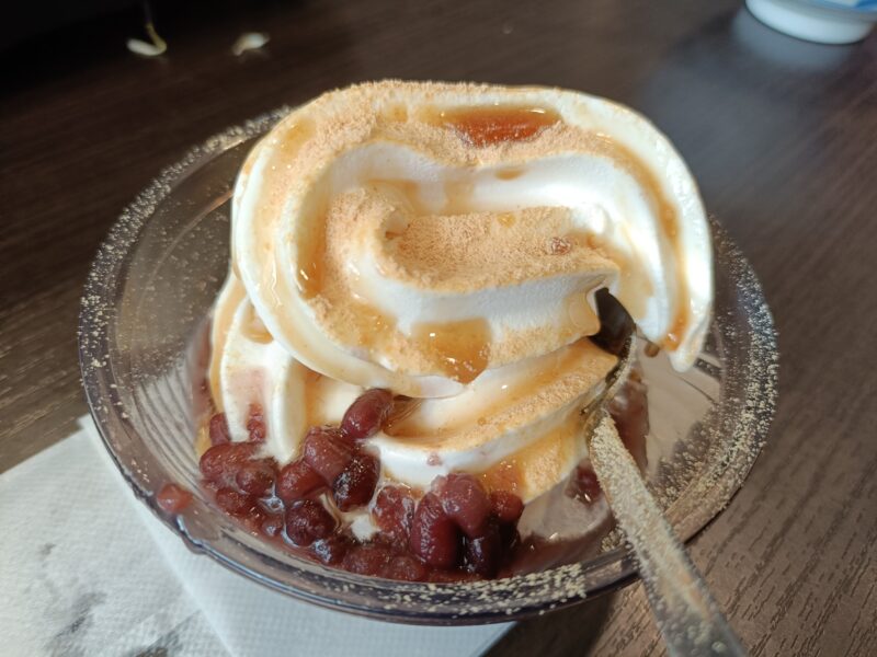 今回はソフトクリーム+くろみつ+きなこ+ぜんざい、の和コンボ。