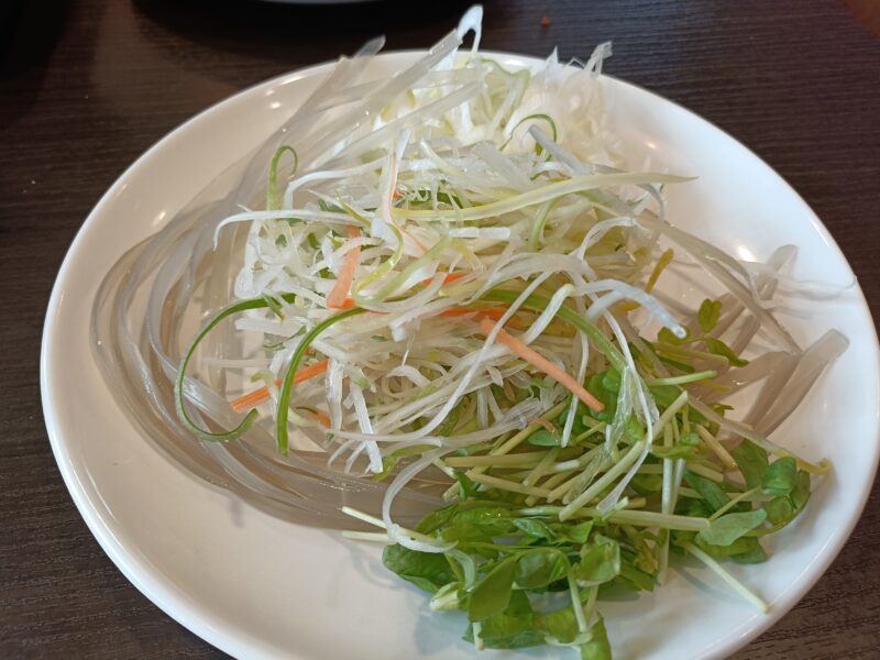 小松菜、豆苗、春雨(葛切り?)、さつまいも春雨、ブンモジャ、白キクラゲ、細笹ねぎ。