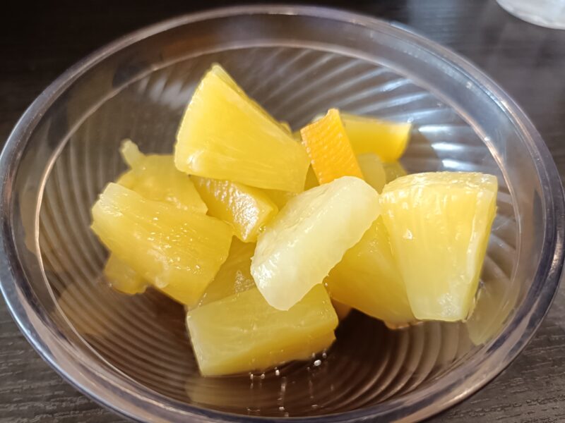 しゃぶしゃぶの間につまむ用のフルーツミックス。口をさっぱりリセットしてくれます。こいつでもうひとがんばり、しゃぶしゃぶを楽しんでいきます!
