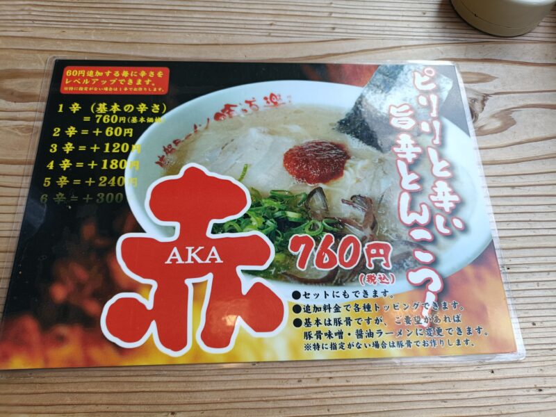見た目が一蘭っぽい”赤(AKA)”なるメニューもでていました。