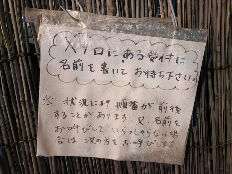 お店の前に名前の記入用紙があるので、名前を書いて呼ばれるのを待ちます。