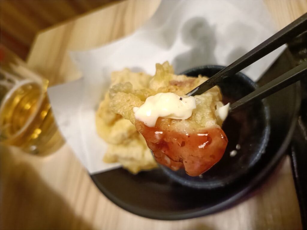 ついでにポン酢もお願いして、元祖とり天の食べ方をしてみたけど、個人的には梅肉マヨソースの優勝!
