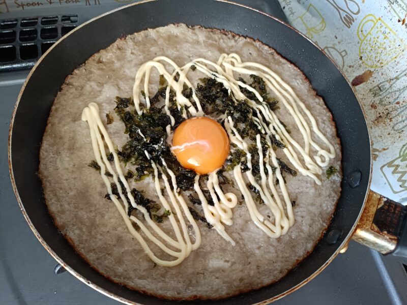 マヨネーズと海苔(今回はジャバン海苔)、卵黄を載せて完成!