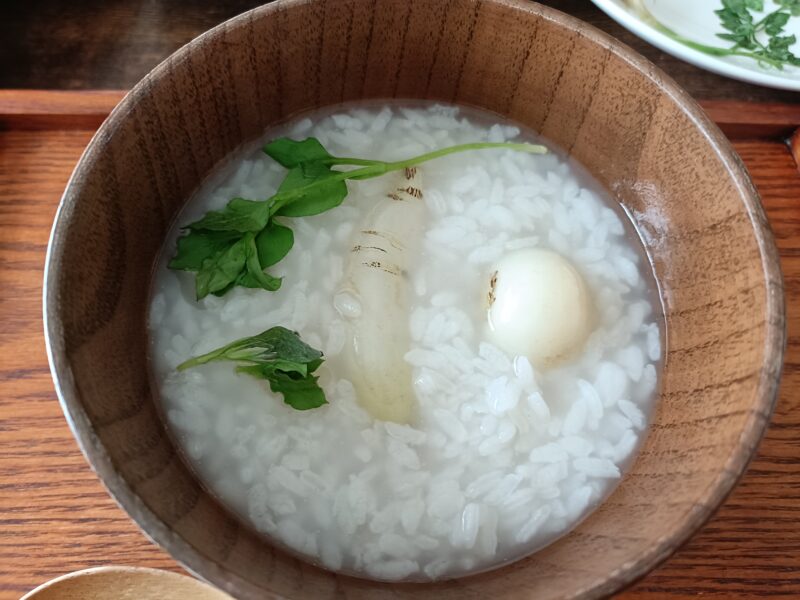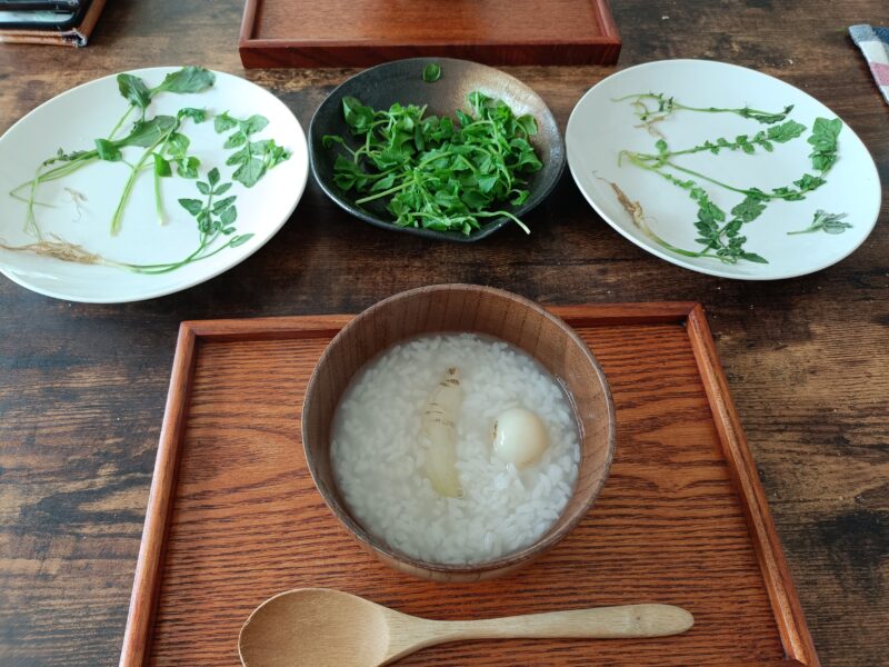 うん、胃腸がすっきりするような爽やかな草のお粥!