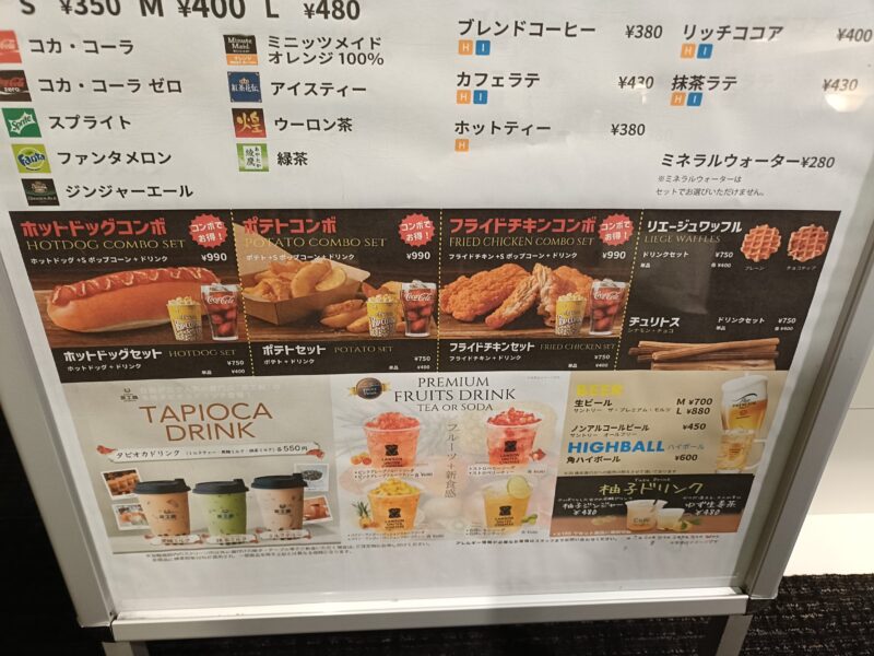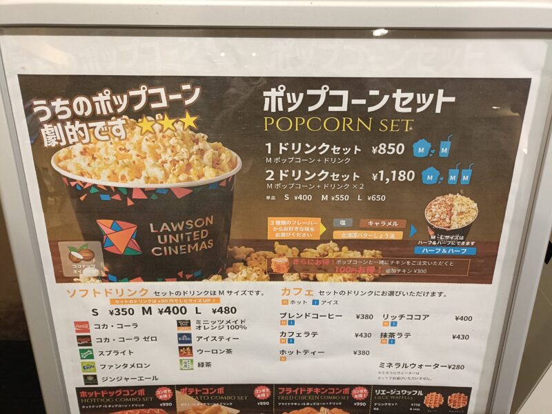 ユナイテッド・シネマ キャナルシティ13の売店のメニュー。