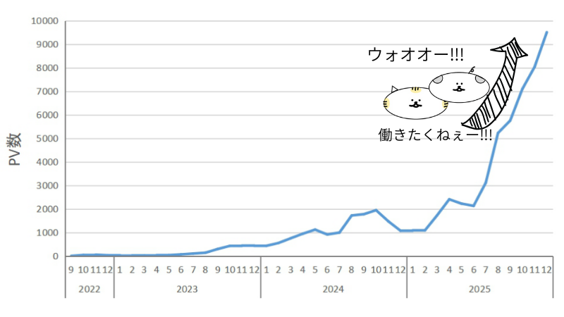 ギューン!!と成長して月10,000PVに迫る勢いに!!