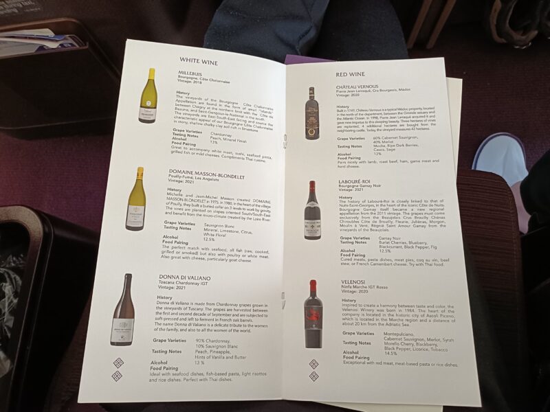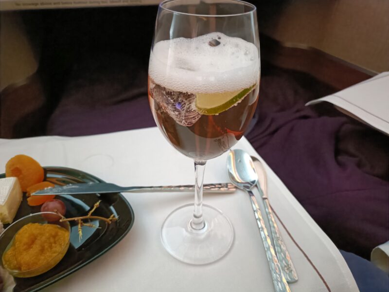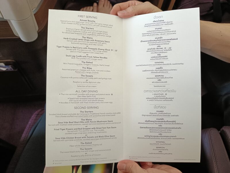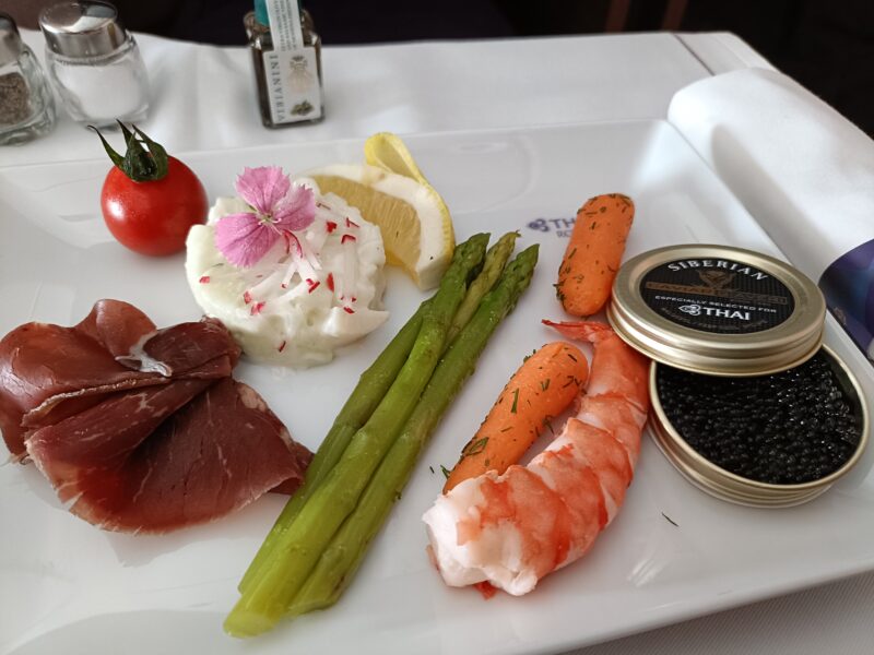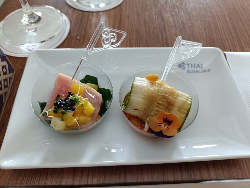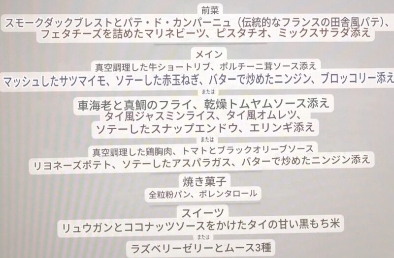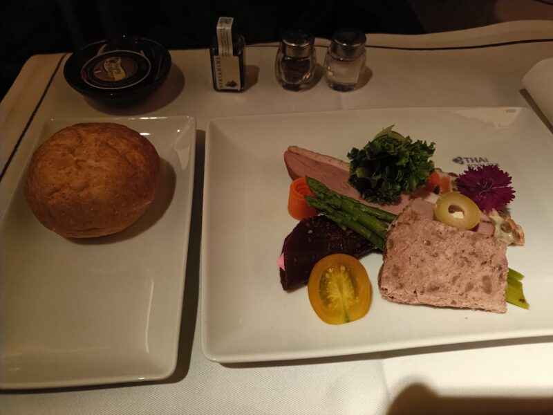 長距離線(バンコク-フランクフルト:11hr)の機内食はコース形式でサーブされました。