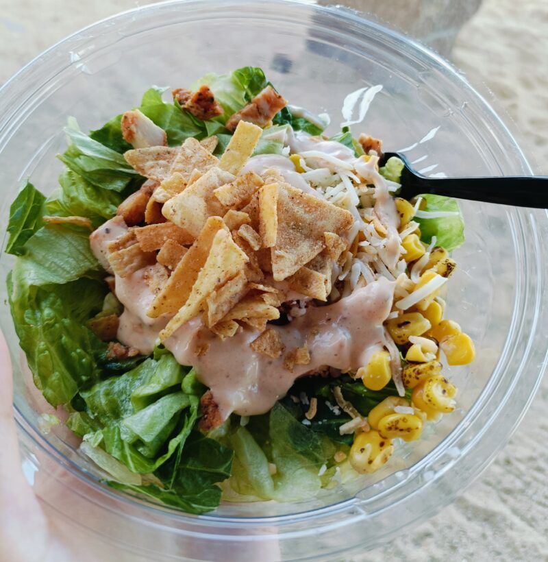 日の出が7時前なので、前日にスーパーで買ったサラダ(朝ごはん)を持って、ビーチに日の出を見に行きます。