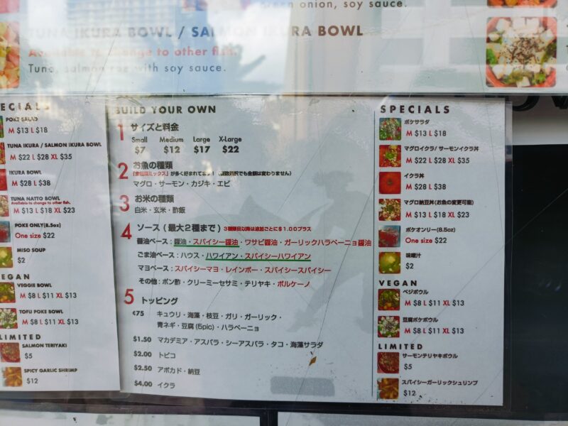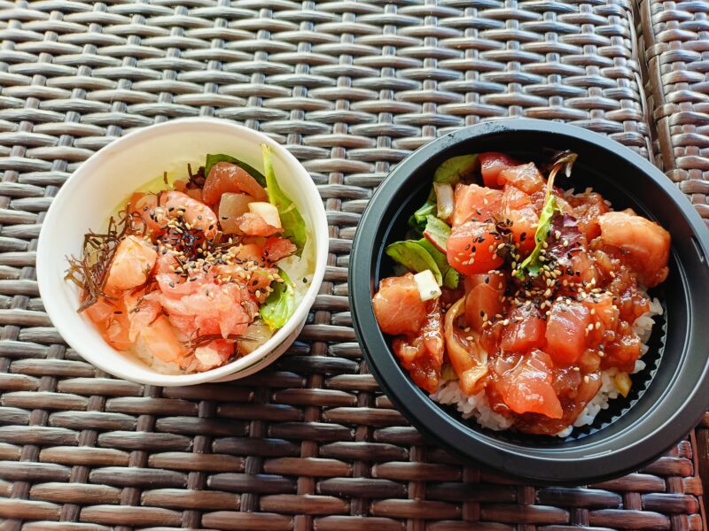 右上:マグロのカリフォルニアロールポキ(約77g) 2.55ドル