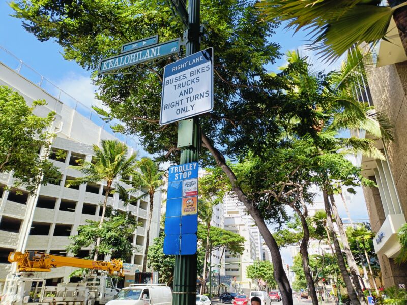 ワイキキトロリーバスのピンクラインはJCBカードを持ってれば、本人と同乗の家族大人1人、子供2人(11歳以下)まで無料で乗車できるので、かなりお得です!