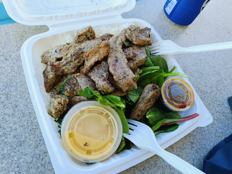 ソースは2種類まで無料で選べるので、スパイシーハワイアン×ガーリックハラペーニョ醤油にしても良かったかも!