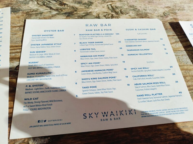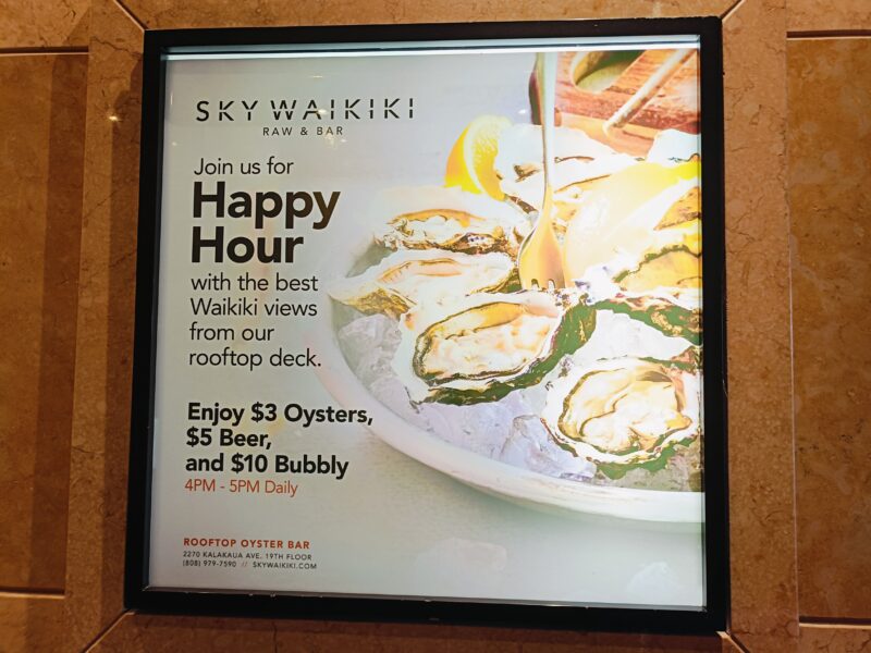 それからハッピーアワー(16~17時の1時間限定!)をやっているスカイワイキキに生牡蠣を食べに行きます!