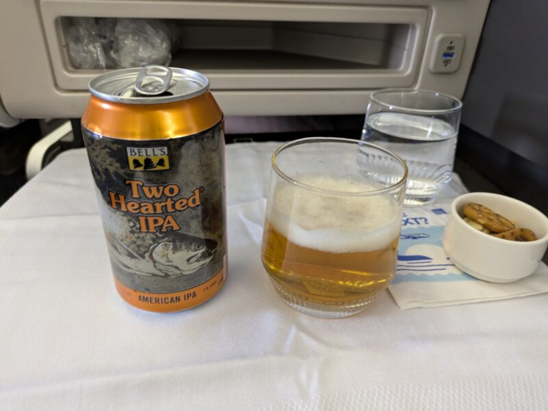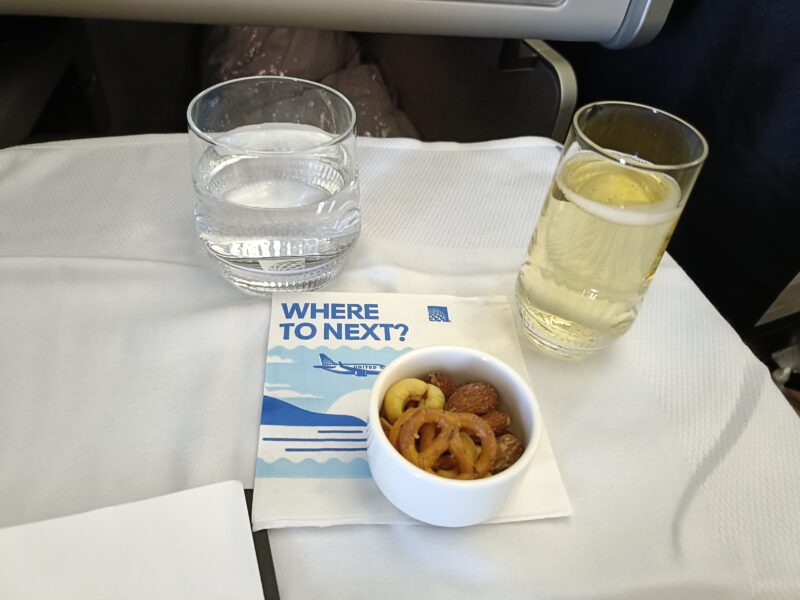 離陸後30分で追加の飲み物オーダーを聞かれます。ここでナッツも到着!