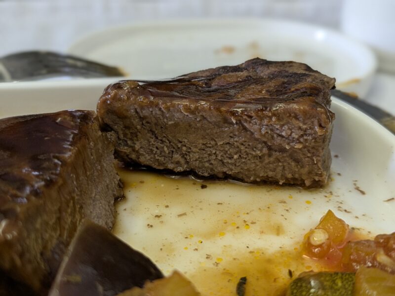 ▼牛フィレ肉のグリルデミグラスソース よく焼きで焼き鳥のハツみたいな地味深さだった…