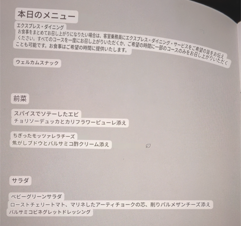 機内メニューはこちらです↓