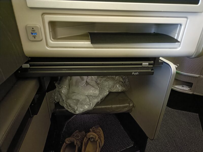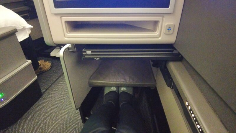 足元に靴や手荷物を置くスペースがあるのと、フルフラットにした時の足置きがあります。