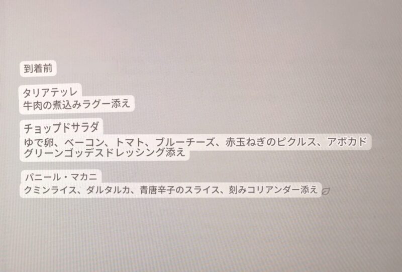 ここからは機内食をざーっと写真付きで載せていきます。
