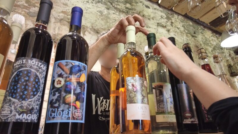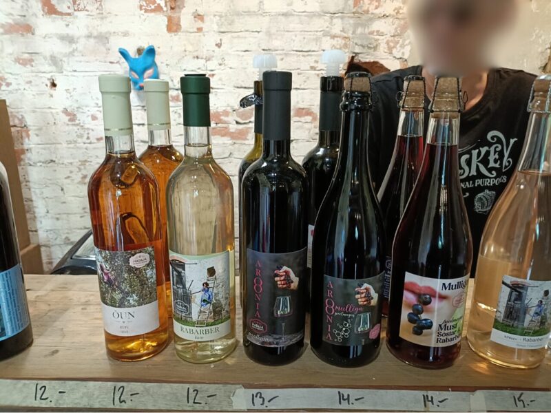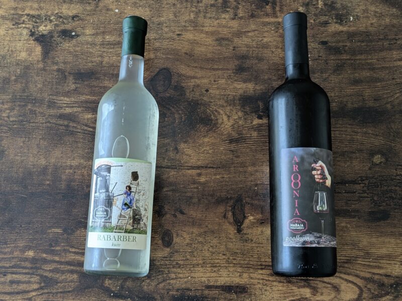 自宅に持ち帰ったのはルバーブのスティルワイン(12€)とチョークベリーワイン(13€)。