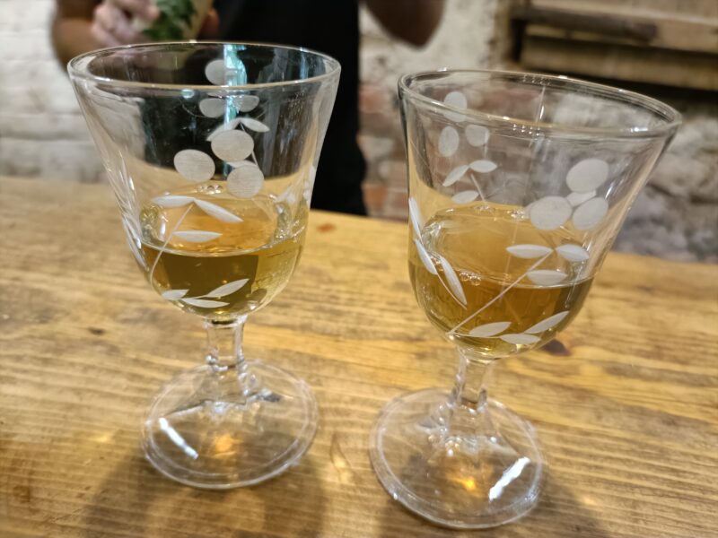 イラクサのワイン。飲んでみると香りの印象と味が全く違いました!生姜とレモンを入れてるらしいです。
