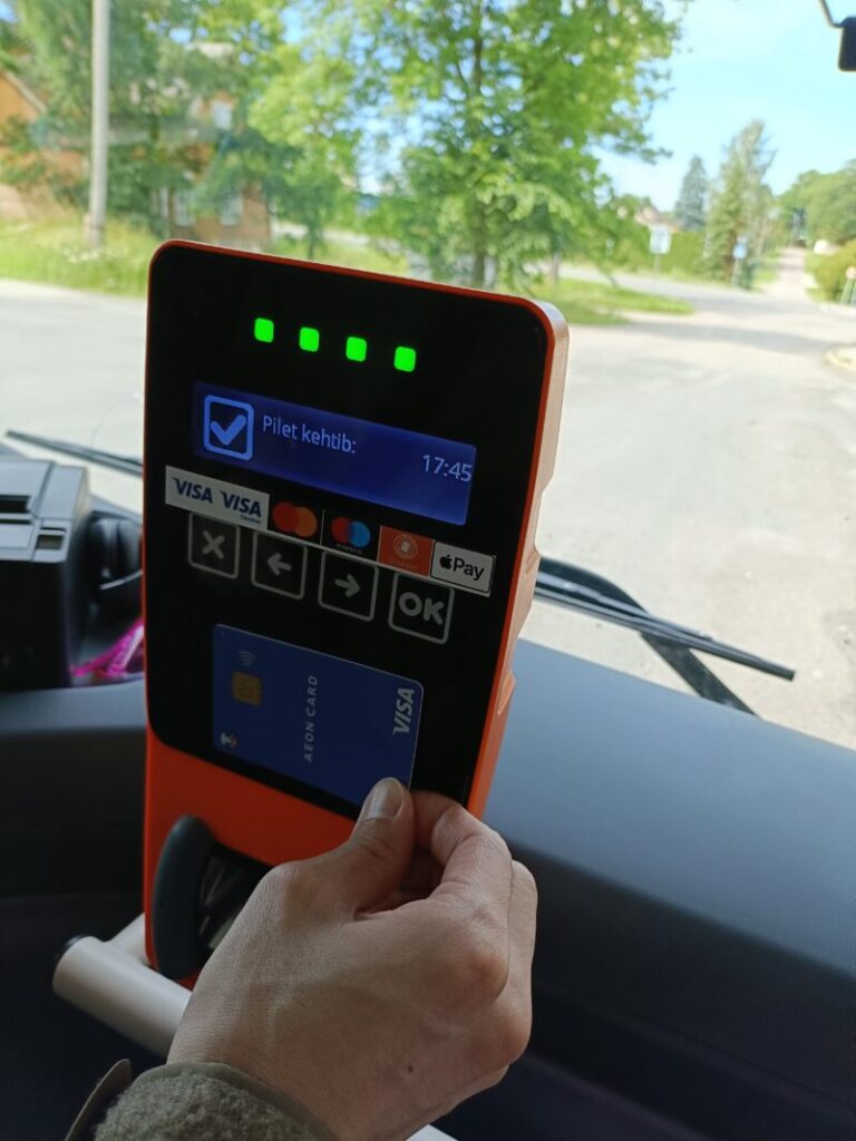 バスに乗る時は、運転手さんに行先(Kose 2)と人数を伝えてクレカのタッチ決済で支払います。
