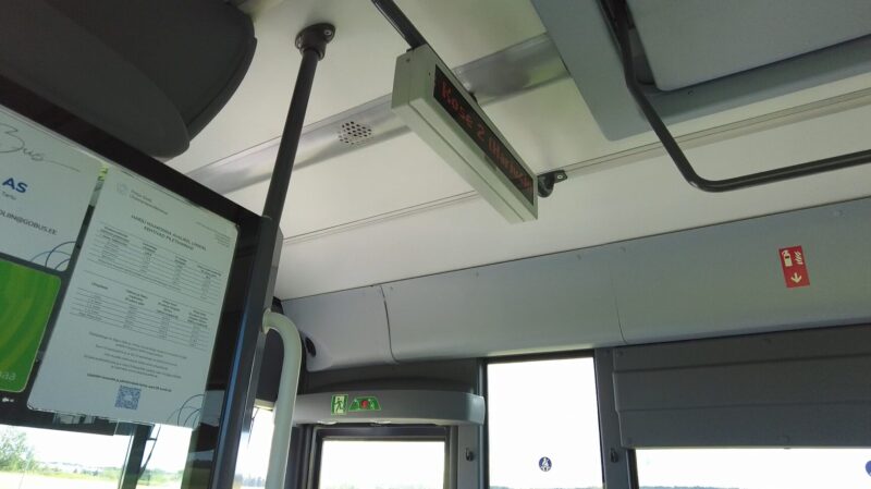 車内の電光掲示板をみれば次のバス停が分かります。