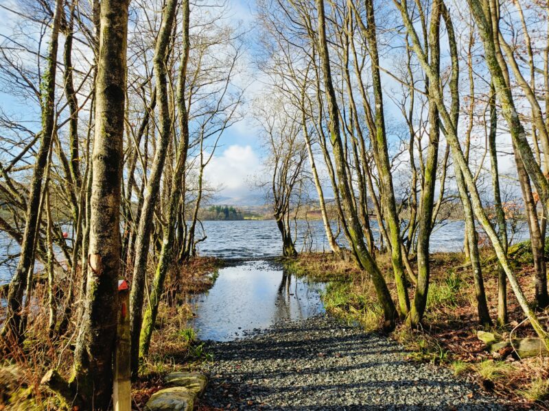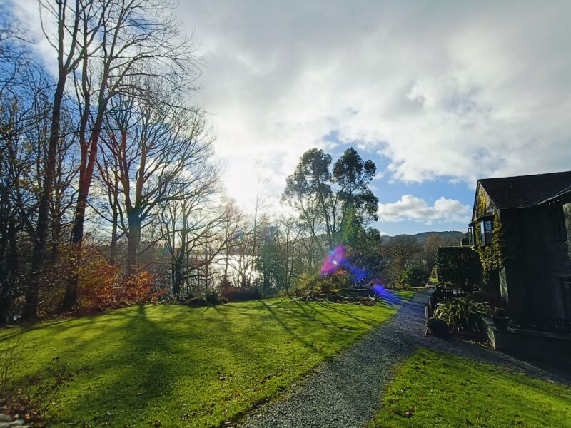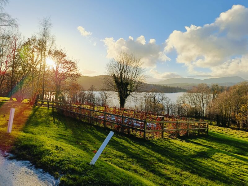 カーテンを閉めずに寝たので薄明かりで目が覚めると、目の前に湖が!