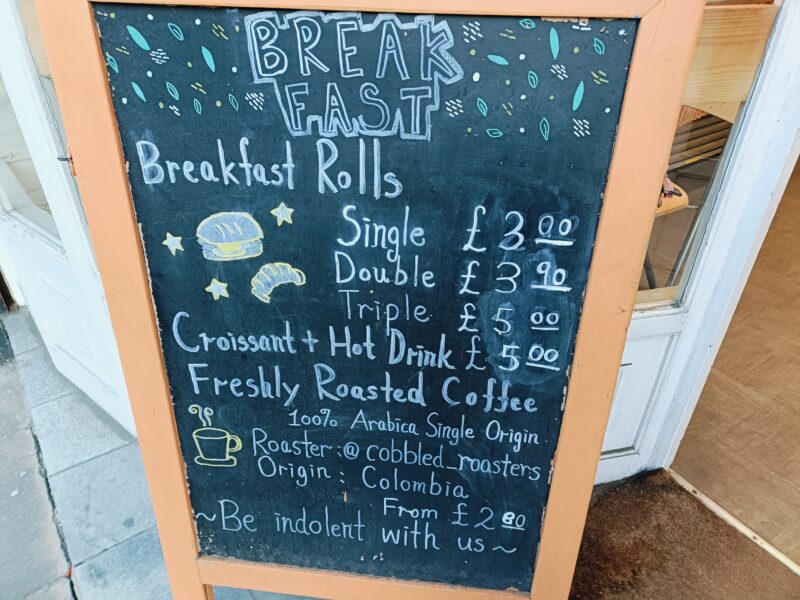 ラテとホットチョコレートで7.3ポンド。これであったまりながらまた街歩きできる!