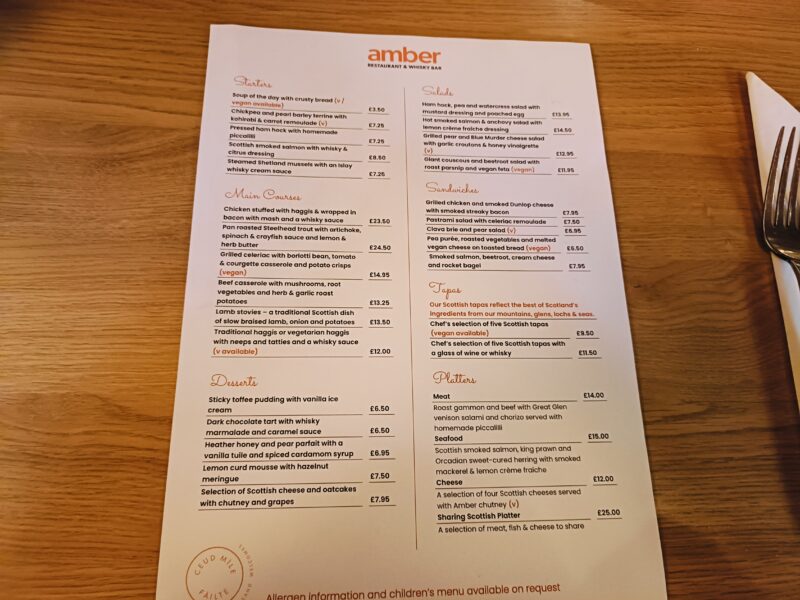 ホテルからまたスコッチウイスキー・エクスペリエンスに戻ってきて、併設されているレストランamberで、やっとごはん!