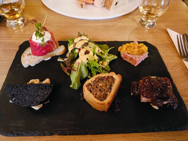 下段左はブラックプディング、ベジタブルハギス、チキン。