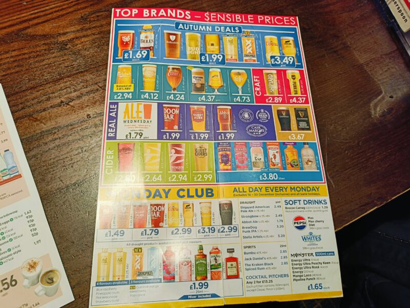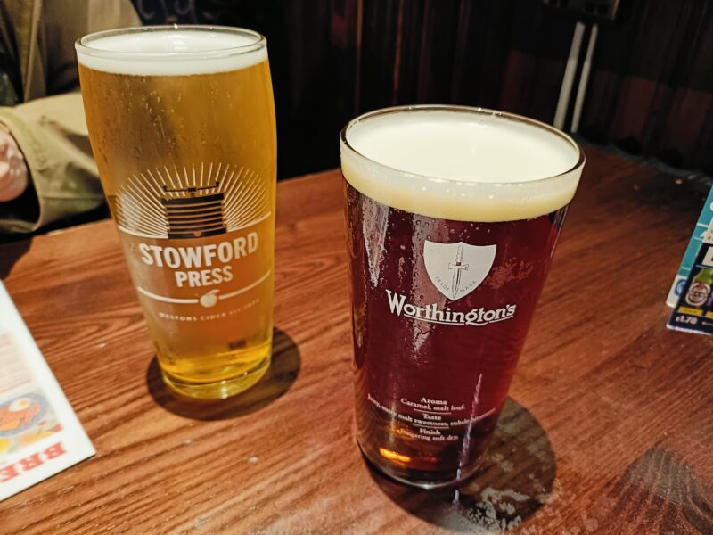 アップルサイダーとエールビール。1パイントで2ポンドは本当に安い!