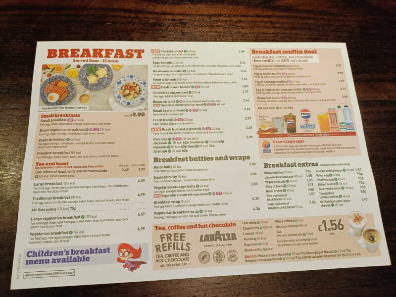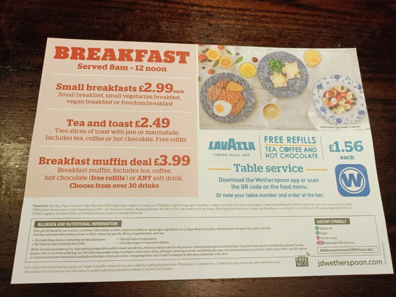 small breakfast (2.9ポンド) とfiesta brunch (3.8ポンド)を注文。