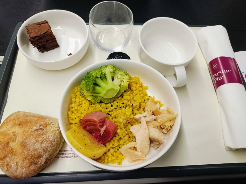 サーモンの方は燻製だったけど、ちょっと生くさめ。クスクスはサフランライスみたい。