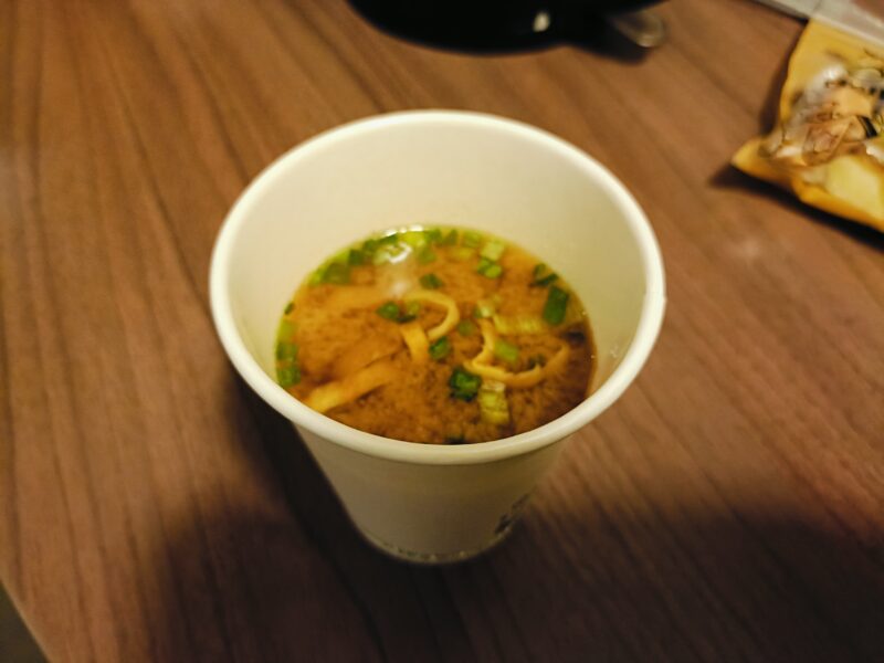 めちゃくちゃ美味しい!インスタントのお味噌汁に感動…。持ってきて良かった…。