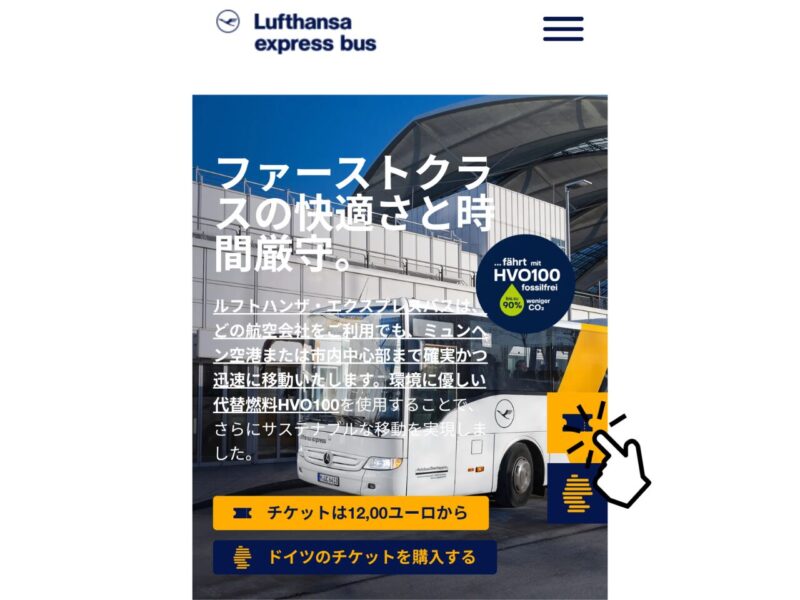 ①ルフトハンザバスの予約用ページにアクセス。