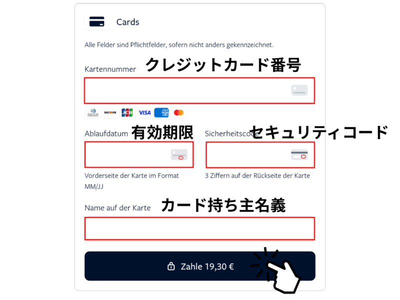 ⑤クレジットカード情報を入力後、支払いボタンをタップ。