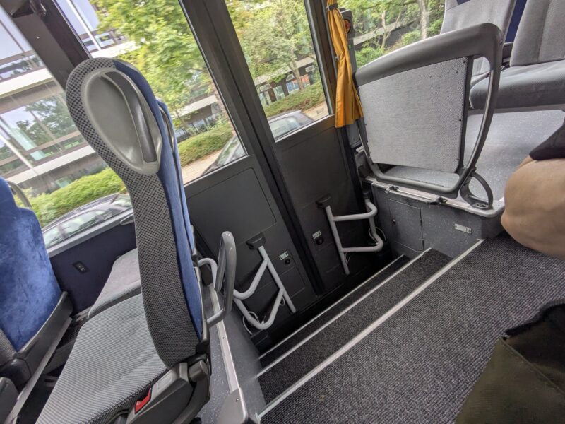 後ろのドア付近はこんな感じ。ベビーカーはここの通路に横付けするしかないかな…?