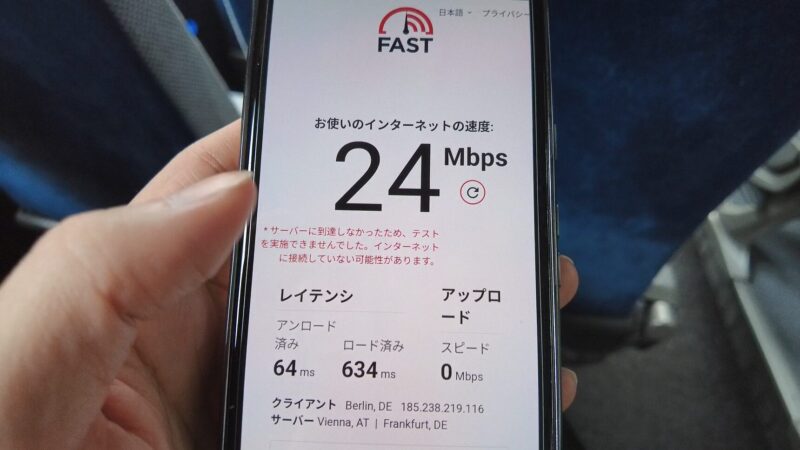 車内無料Wi-Fiはアップロードはできないけど、ネット閲覧はサクサクでした。