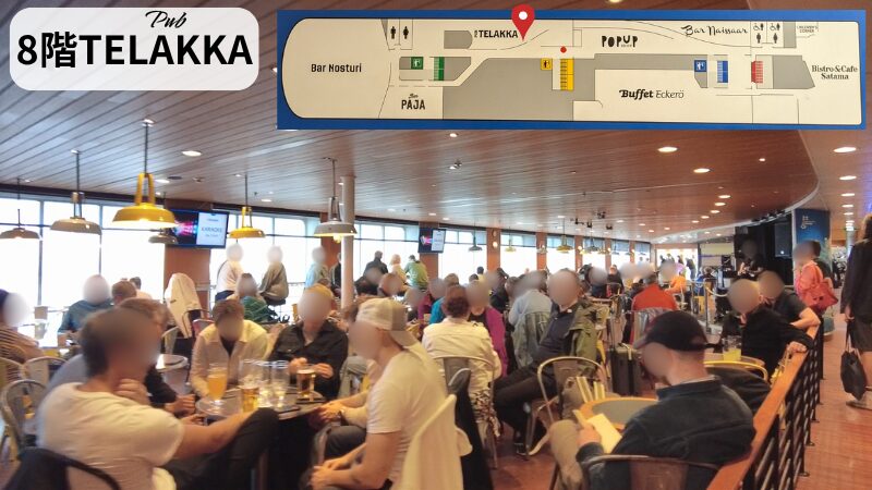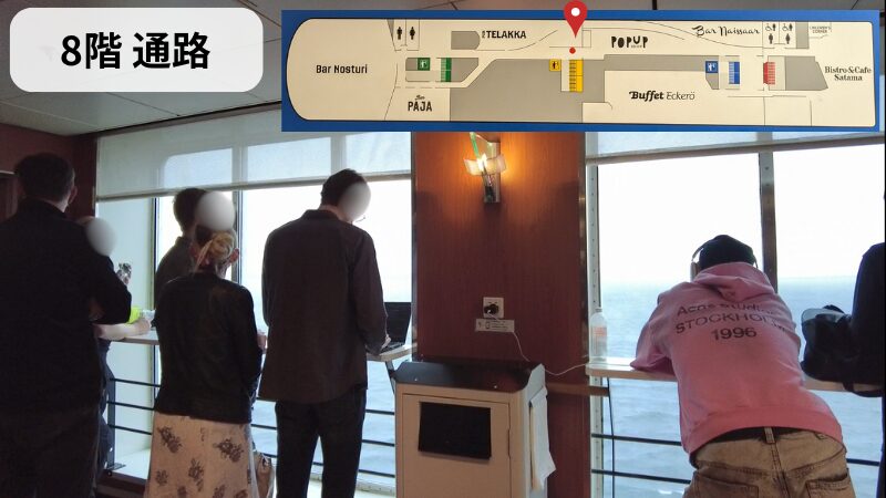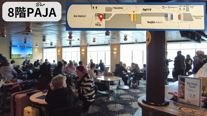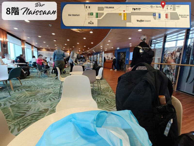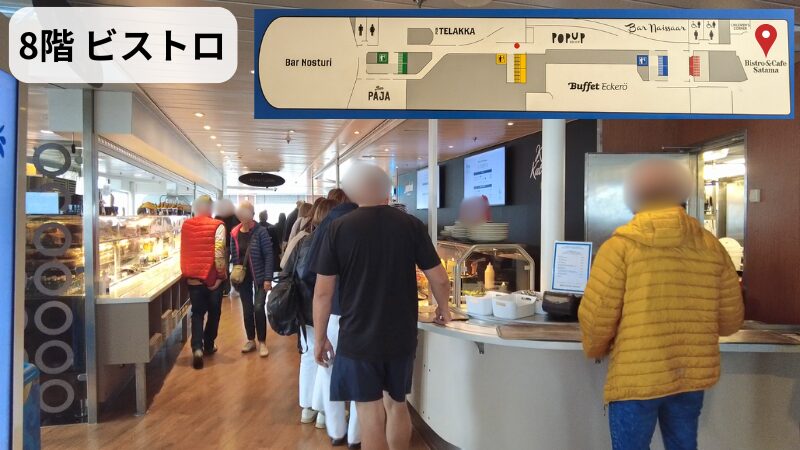 8階から船外デッキまでつながってるBistro&Cafe Satama。食堂みたいになっていてお食事を楽しめます。