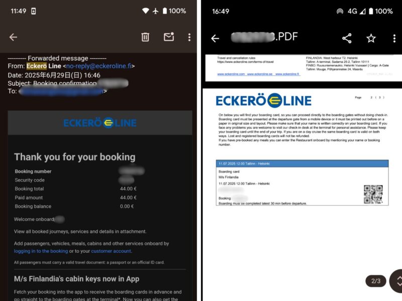 2025年7月にタリン→ヘルシンキの移動でEckerö Line(エケロライン)を利用しました。