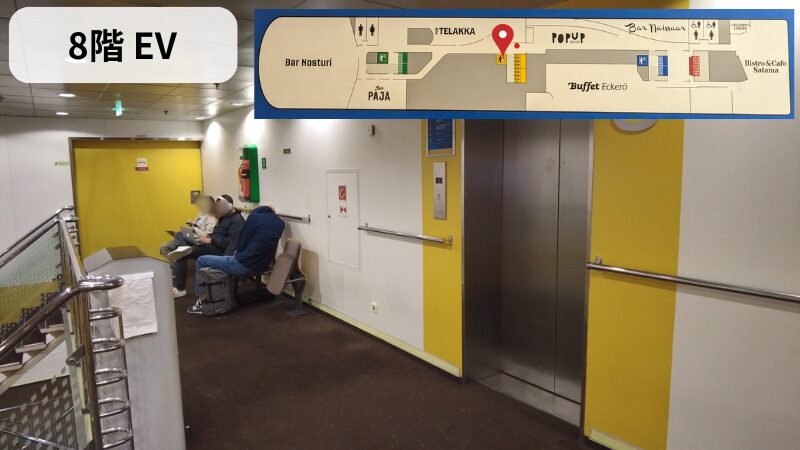 無料座席はほとんど8階なので、階段やエレベーター(EV)で即8階を目指します。