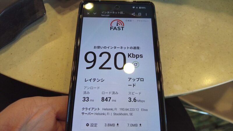 船内無料Wi-Fiは0.9Mbpsほど